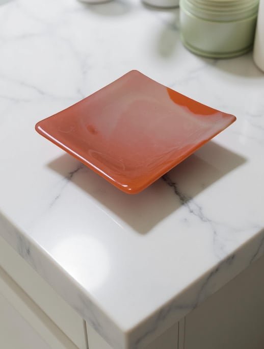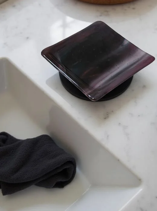 Handmade locally from thick, durable glass, these soap dishes add a vibrant pop of color to any sink or shower. Each one-of-a-kind piece is sturdy, easy to clean, and designed to keep your soap dry and lasting longer.